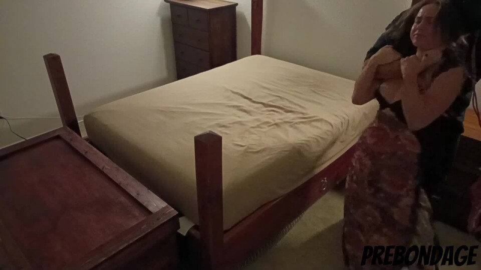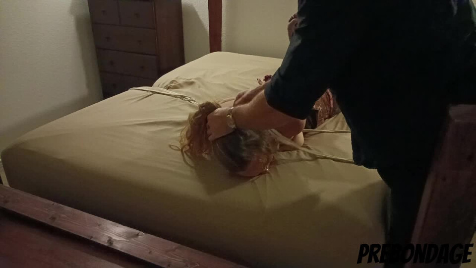 A quite night in was not in the cards for Blaire. A large masked man had grabbed her & pulled her into her bedrom. There he proceeded to manhandle her & tie her up. Wrists, then legs, then filling her mouth with a red ballgag. She soon found herself tossed onto the bed where she was tightly hogtied. Her hair wasnt even spared as the intruder tied rope from her hair to her ankles keeping her hogtie intense. She was then fastened to the bed from all sides before a vibrator was placed between her legs. The masked man took every chance he got to spank and toy with her. She was completely out of breath & exhausted when the lights went dark but her torment wasnt over yet...far from!